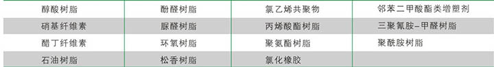 INT 醛樹脂與絕大多數(shù)用于涂料/油墨的樹脂有良好的相容性。包括下列樹脂: